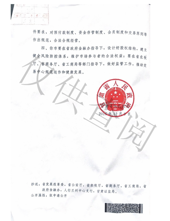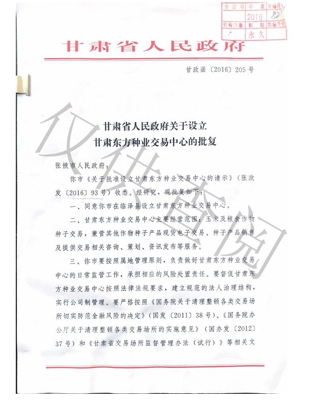 甘肃省人民政府关于设立甘肃东方种业交易中心的批复