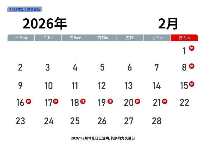 甘肃东方种业交易中心2026年2月贸易日历