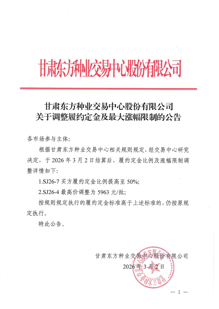 关于调整履约定金及最大涨幅限制的公告