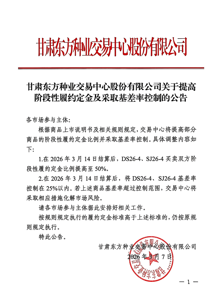关于提高阶段性履约定金及采取基差率控制的公告