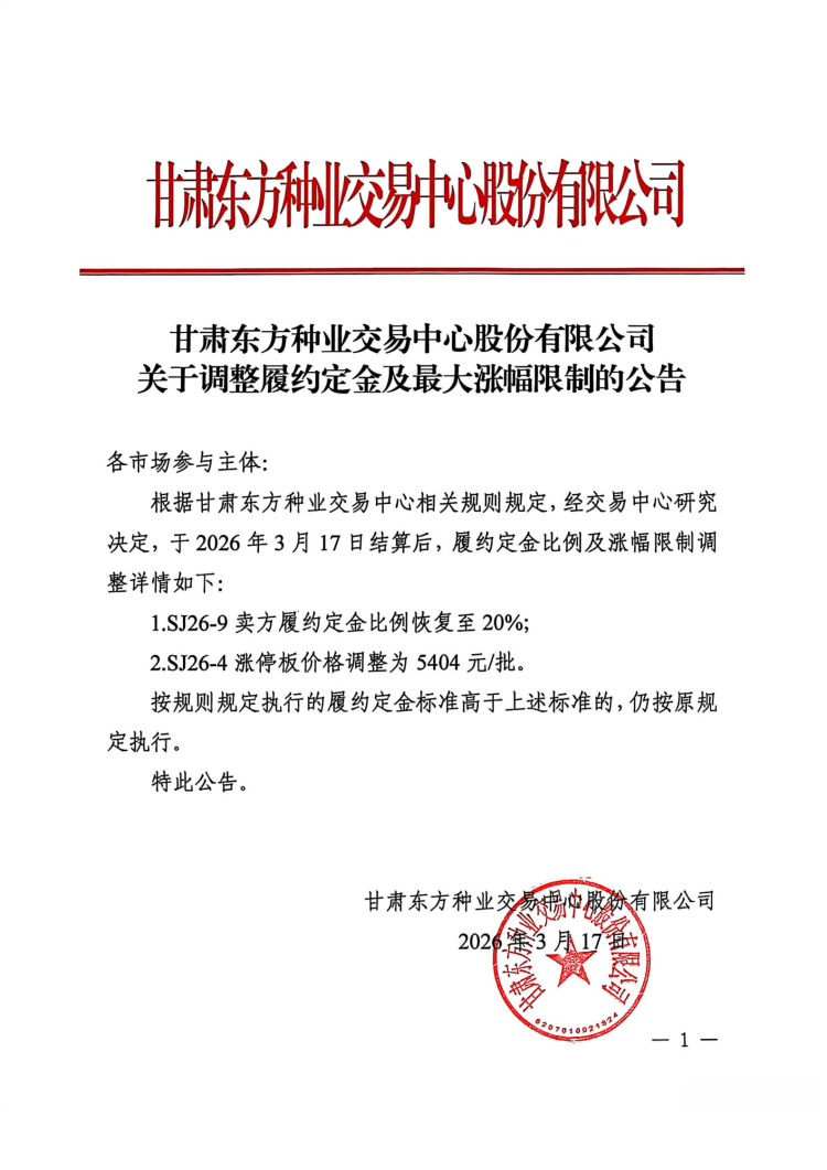 关于调整履约定金及最大涨幅限制的公告