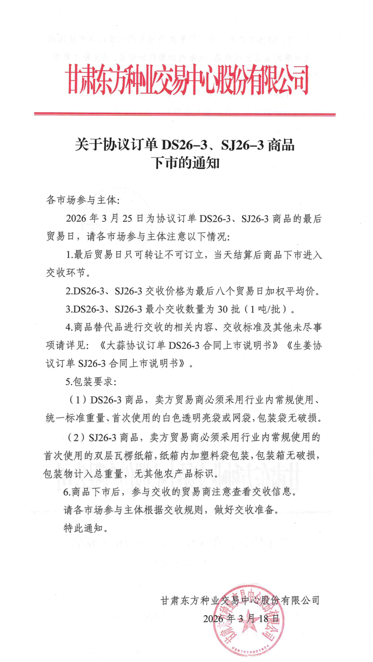 关于协议订单DS26-3、SJ26-3商品下市的通知