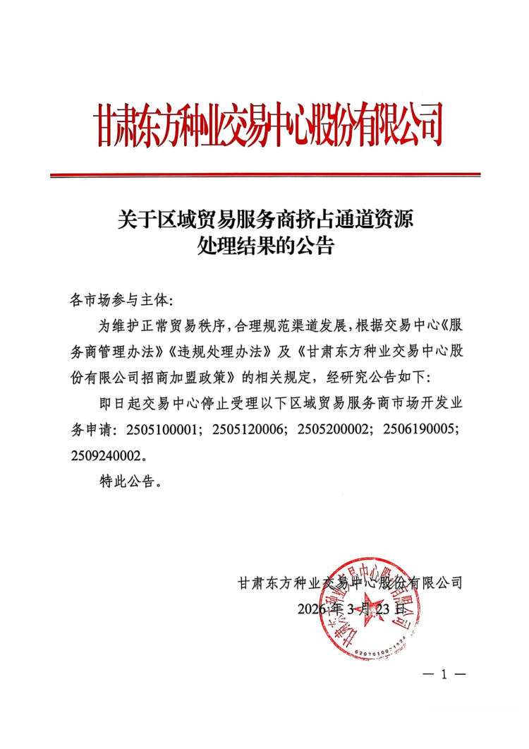 关于区域贸易服务商挤占通道资源处理结果的公告