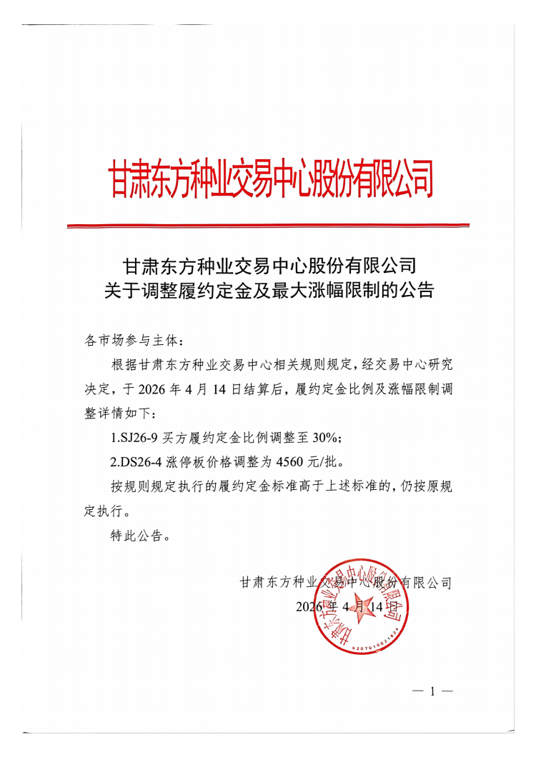 关于调整履约定金及最大涨幅限制的公告