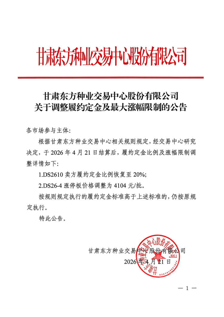 关于调整履约定金及最大涨幅限制的公告
