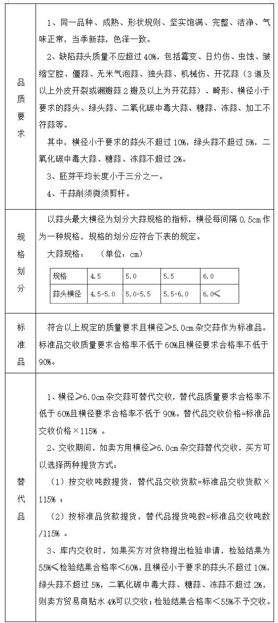 甘肃东方种业交易中心大蒜交收质量标准