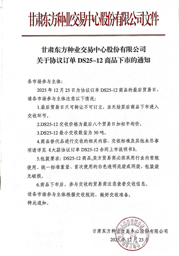 关于协议订单DS25-12商品下市的通知